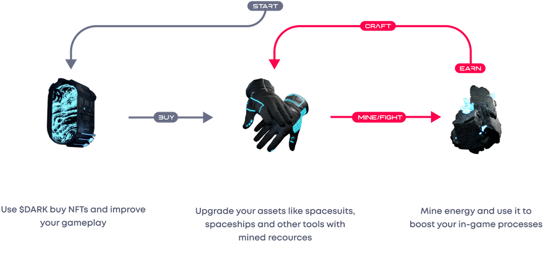 $DARK (BEP-20) token will be used to forge ‘Terra Firma’ (BEP-721) NFTs. In order to obtain your own land, you must commit 1,000 $DARK tokens which will be locked inside the smart contract for 2 months.